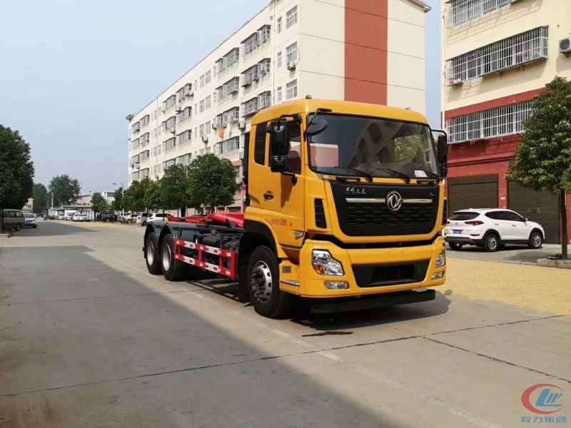 东风天龙25吨后双桥勾臂式垃圾车