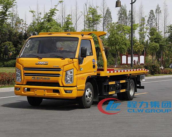 程力威牌清障车_五十铃一拖二清障车底盘配置:江铃顺达宽体驾驶室,江铃130马力。五档变速箱,700钢丝胎,空调、方向助力、汽刹、电动玻璃、遥控钥匙中控锁、多功能方向盘。