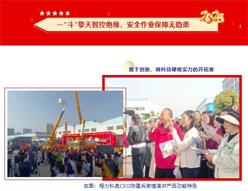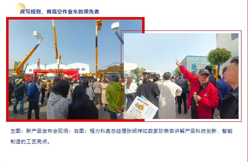“科技是第一生产力,创新则为企业发展壮大的根基” ,在湖北程力汽车集团,发展新质生产力新兴产业蔚然成风、方兴未艾;青春程力每天迸发出蓬勃的内生动力,各生产经营单位争先恐后搞研发强创新,并取得显著成效。 4月1日上午,春光明媚暖阳和煦,程力科奥高空作业车专业厂在集团专用汽车工业园,举行了4.5千伏特高压带电高空作业车新产品户外现场培训及促销推荐会,这一爆款产品的上市,深受销售经理喜爱和用户追捧,现场数百人参加了盛会。
